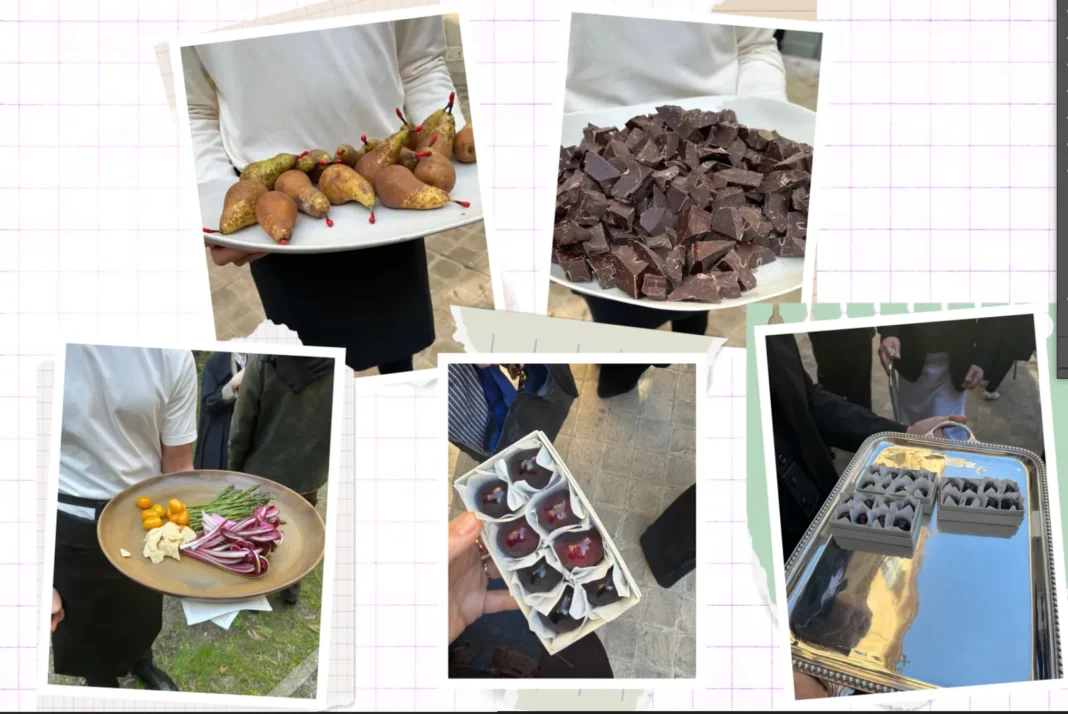 At the Fall 2026 Paris Fashion Week presentation, attendees were greeted with a curated selection of elegant yet deceptively simple bites, including boxed blackberries and cherries, premium chocolates, and fresh juices — notable given that those fruits were out of season in France at the time.