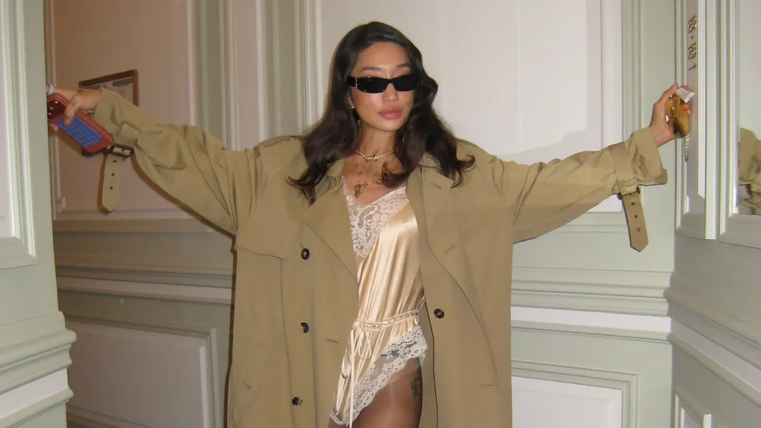 At the Saint Laurent Fall/Winter 2026 show — one of the marquee events of Paris Fashion Week, often staged with the Eiffel Tower as its dramatic backdrop — Peggy Gou made a memorable entrance. Her outfit was both cool and elevated, featuring a khaki trench layered over a lace‑trimmed romper paired with sheer tights and sleek accessories. This combination struck a balance between street‑inspired ease and Parisian chic, complementing the mood of the show while staying true to Gou’s own fashion persona.